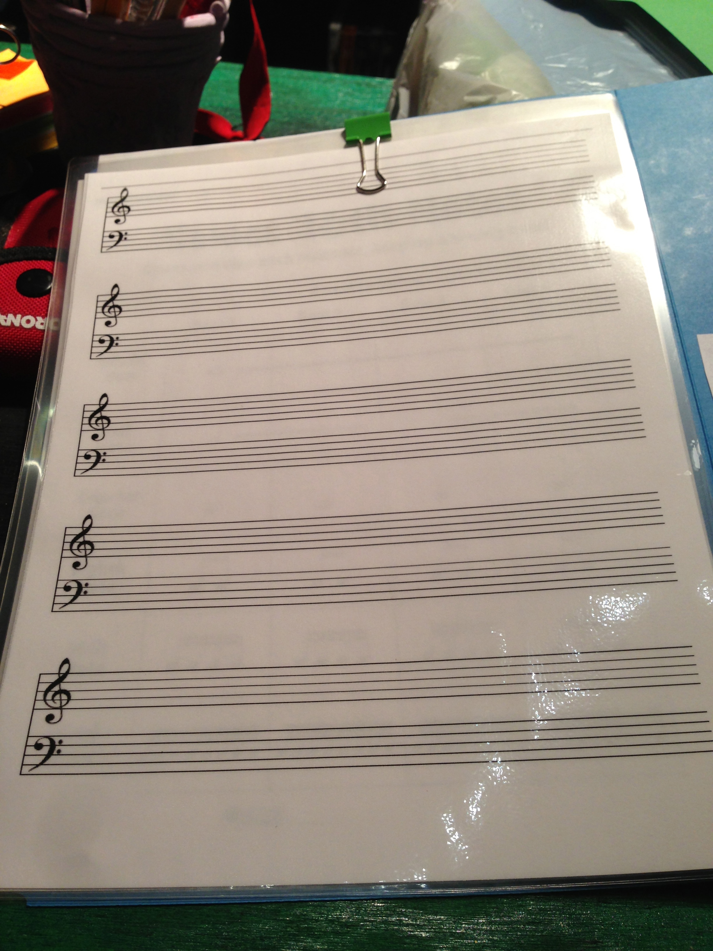 What CAN’T you use a laminated piece of staff paper for? I’m still looking for the right dry erase markers to include in these folders but every student having this in front of them is going to be so helpful when talking about composition and allowing them to practice the basics themselves while we are talking about it.