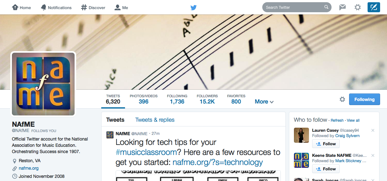 Challenge- Find 5 music educators on the list and follow them! Start off slow if you are new to Twitter, the more people you follow the more confusing it would be at first!