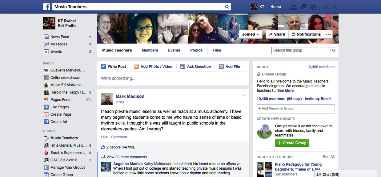 1.) Let’s start with something easy. You have a Facebook account right? That’s the place you tend to go to take those Buzzfeed Quizzes and talk about your day to the rest of the world. I want you to do something a little different. Go to https://www.facebook.com/groups/musicpln/ and request access. This is a fantastic group of over 10,000 that are constantly talking. You can find a plethora of information in just one feed. When you are approved: