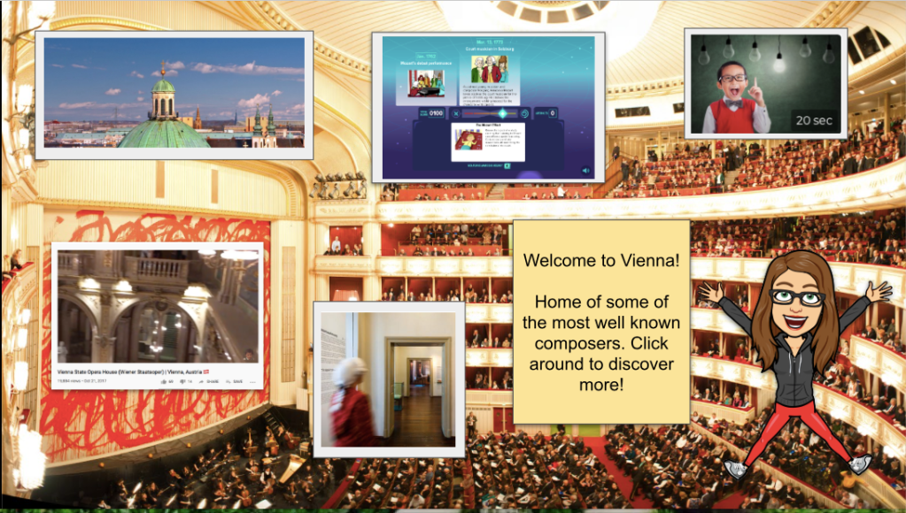 I will admit, I have fallen down a deep rabbit hole with these Bitmoji Classrooms. I have made general classrooms, ones for centers, etc. It is just way to much fun! One recent mini project has been little virtual field trips built as a Bitmoji classroom. Taking a few activities, videos, and virtual tours that best represent that area of the globe and allow students to explore. Something fun for students to explore and learn about a place outside of their community. You could include songs, movement games, videos, all kinds of resources. I’ve made two examples in Google Slides below!